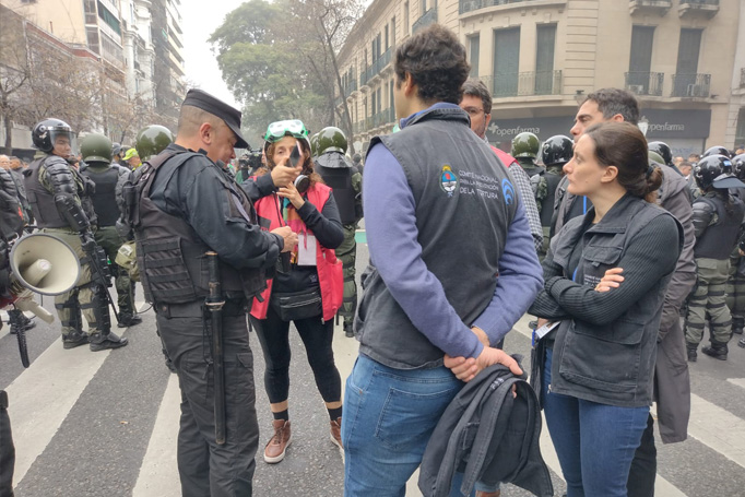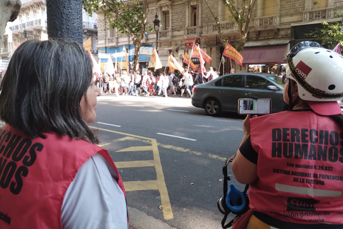 Desde la implementación del protocolo antipiquetes, la Comisión Provincial por la Memoria monitoreó el despliegue de las fuerzas de seguridad en las manifestaciones públicas. Esta labor se realizó en nuestro carácter de Mecanismo local de prevención de la tortura, en el marco del trabajo articulado con el Comité nacional para la prevención de la tortura y el Mecanismo local de CABA.