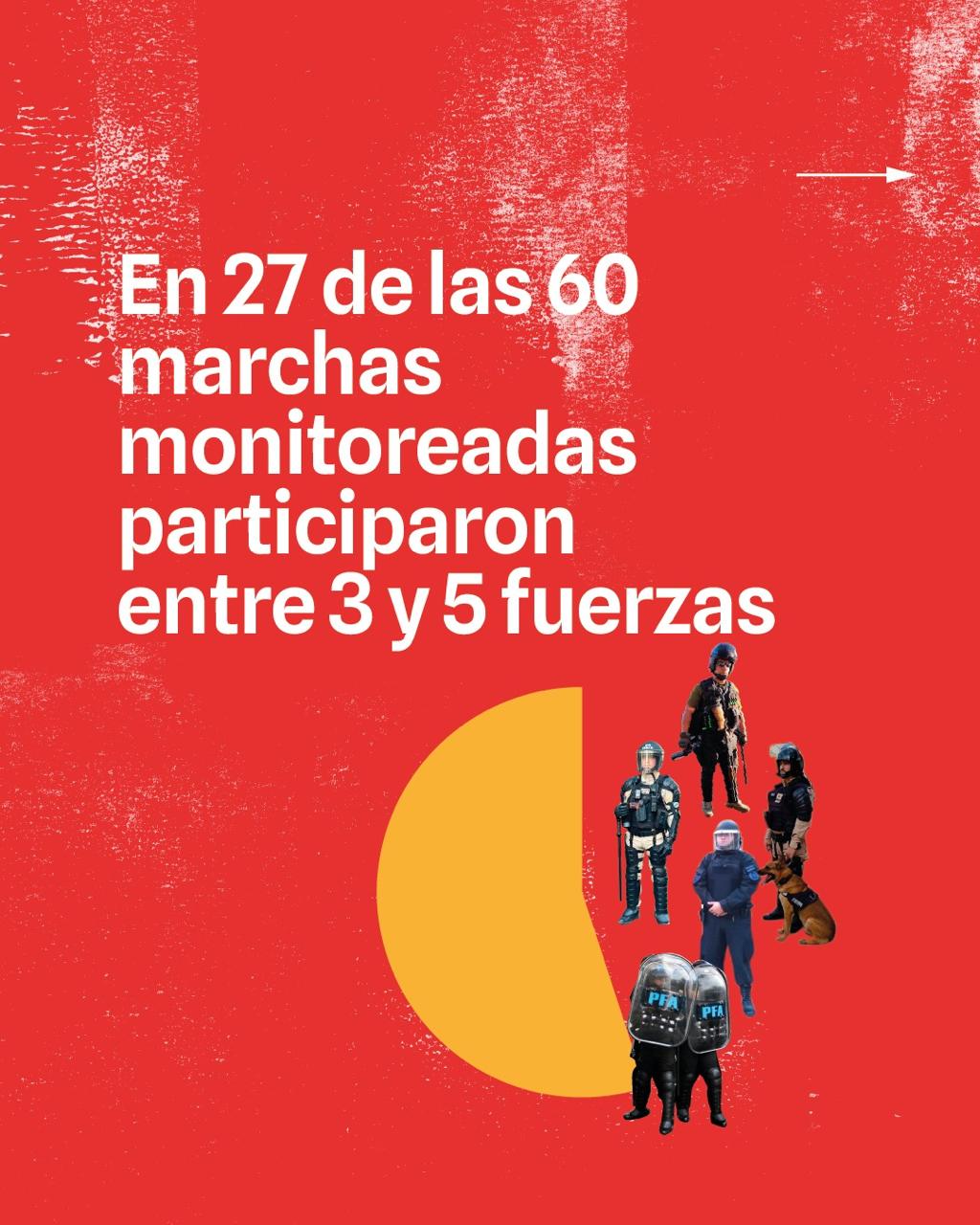 Cabe destacar que en 17 de las movilizaciones monitoreadas se produjeron episodios represivos por parte de las fuerzas policiales y de seguridad; es decir, una de cada tres manifestaciones fue reprimida.