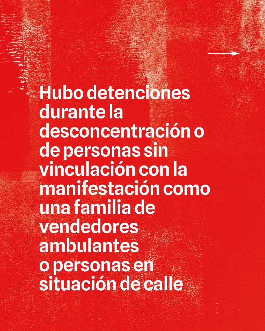 En el desarrollo de estas movilizaciones, las fuerzas de seguridad también detuvieron arbitrariamente a manifestantes. En la mayoría de las detenciones se imputaron delitos como atentado y resistencia a la autoridad o daños; figuras delictivas que, por la escala penal que contempla, implica la rápida liberación de las personas detenidas.
