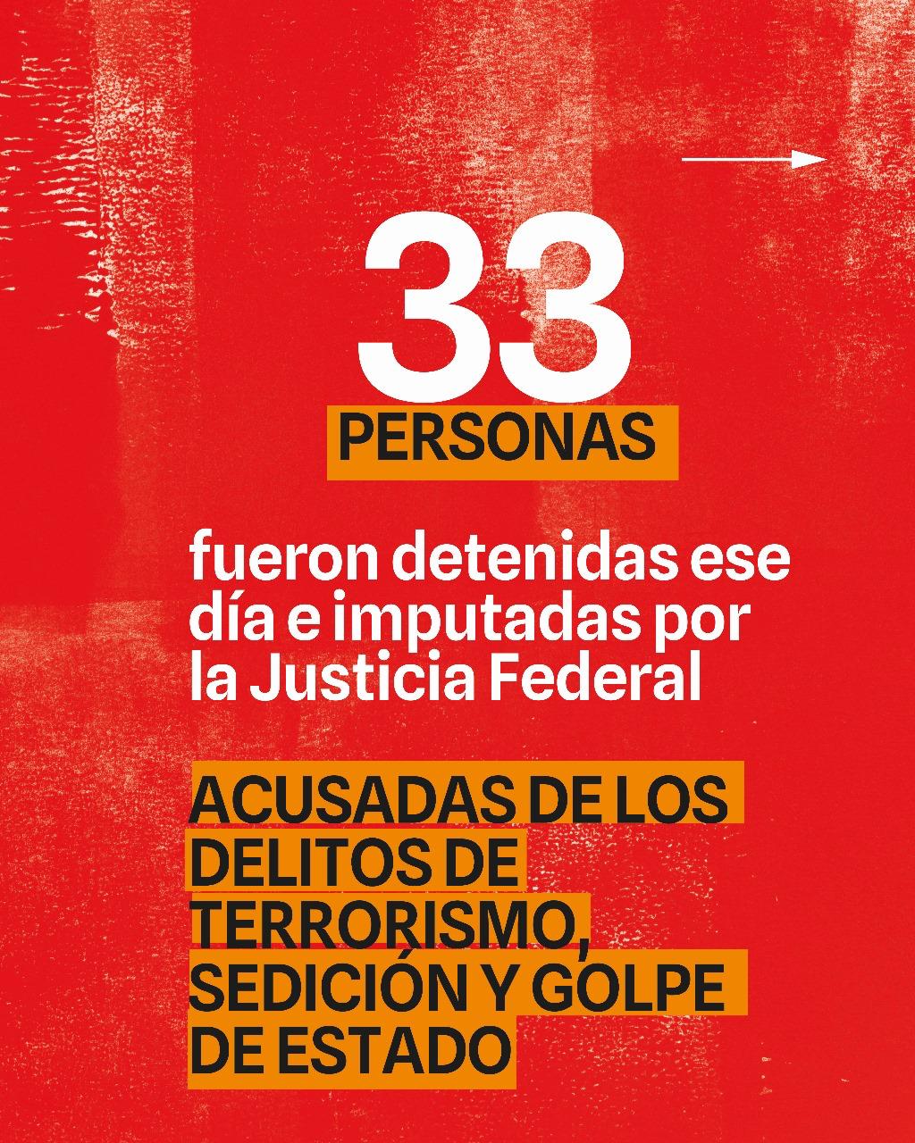 Sin embargo, durante la jornada de la movilización en repudio al tratamiento de la Ley Bases, el día 12 de junio, se produjo la detención de 33 (treinta y tres) personas con intervención de la justicia federal. Estas detenciones representaron una nueva modalidad político-judicial agravada de penalización de la protesta social por incorporar la acusación de “terroristas”, “sediciosos” o “golpistas” a las personas aprehendidas.