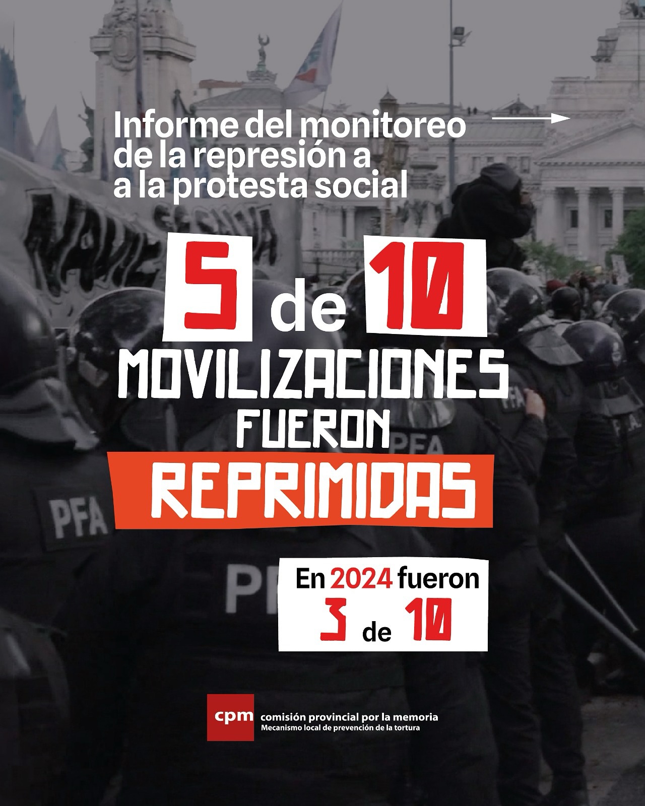 Si se tiene en cuenta que el año pasado se reprimieron 3 de cada 10 manifestaciones, estos datos de 2025 dan cuenta de una decisión político-institucional de responder aún con más violencia y represión a los reclamos de amplios sectores de la sociedad, en particular de los sectores más vulnerables como el caso de los adultos mayores.