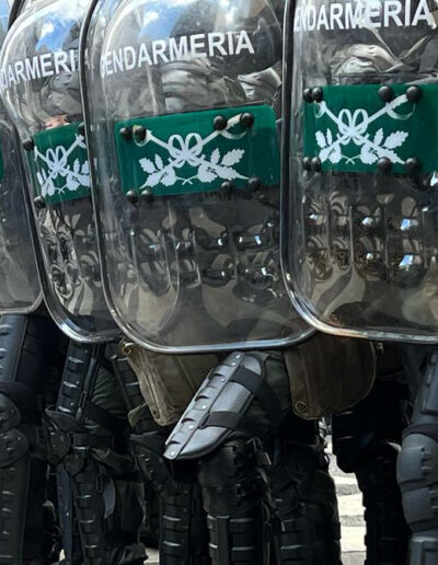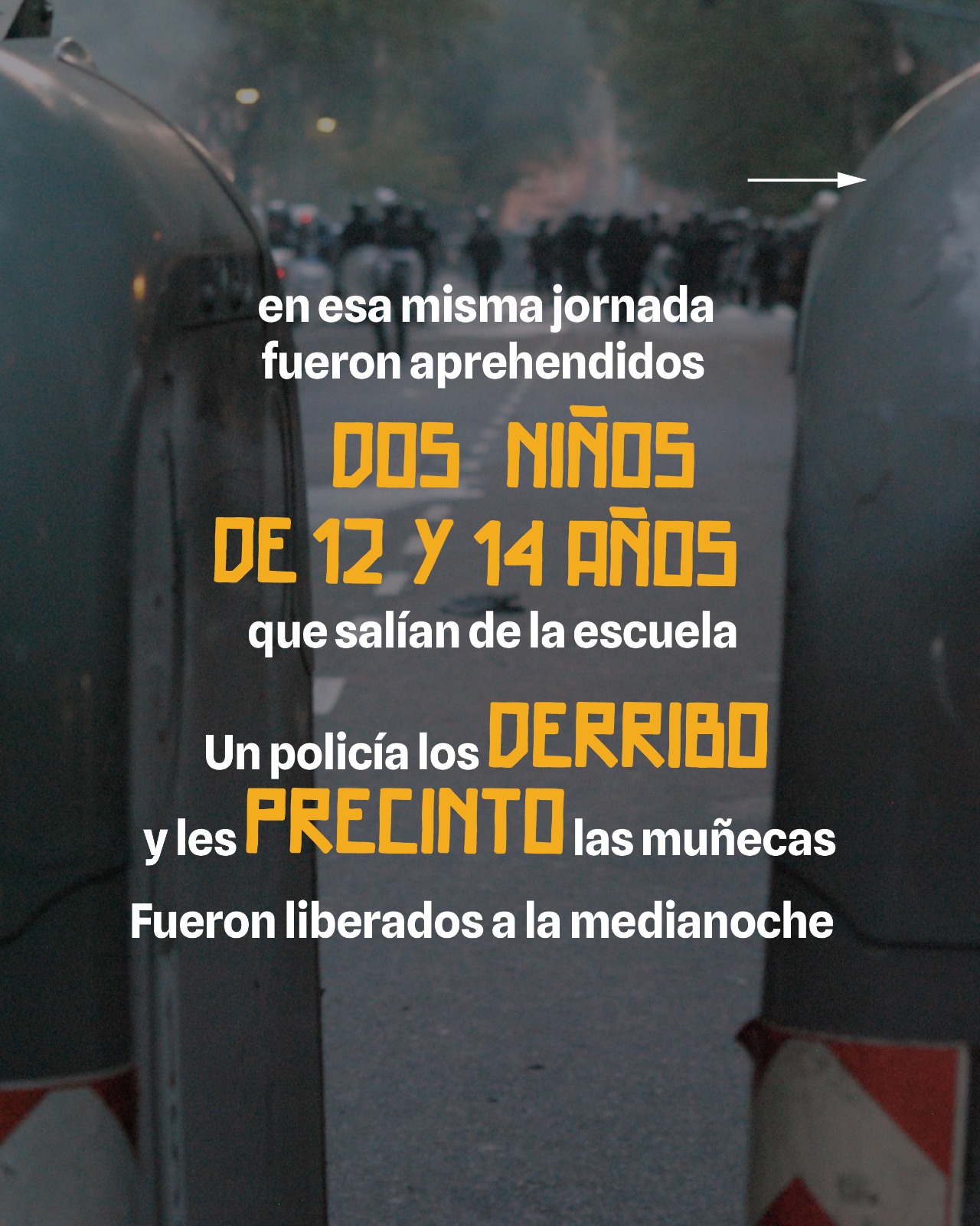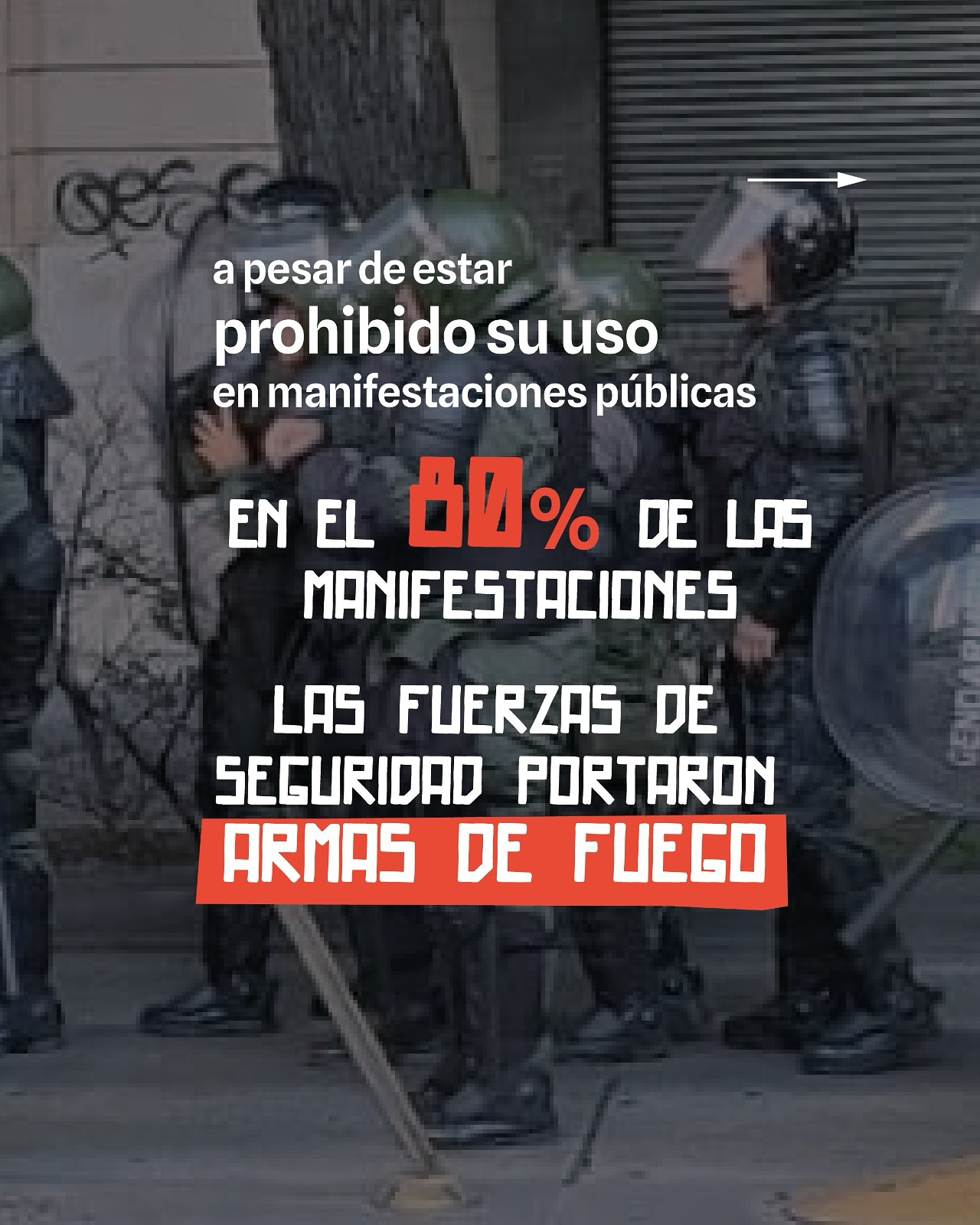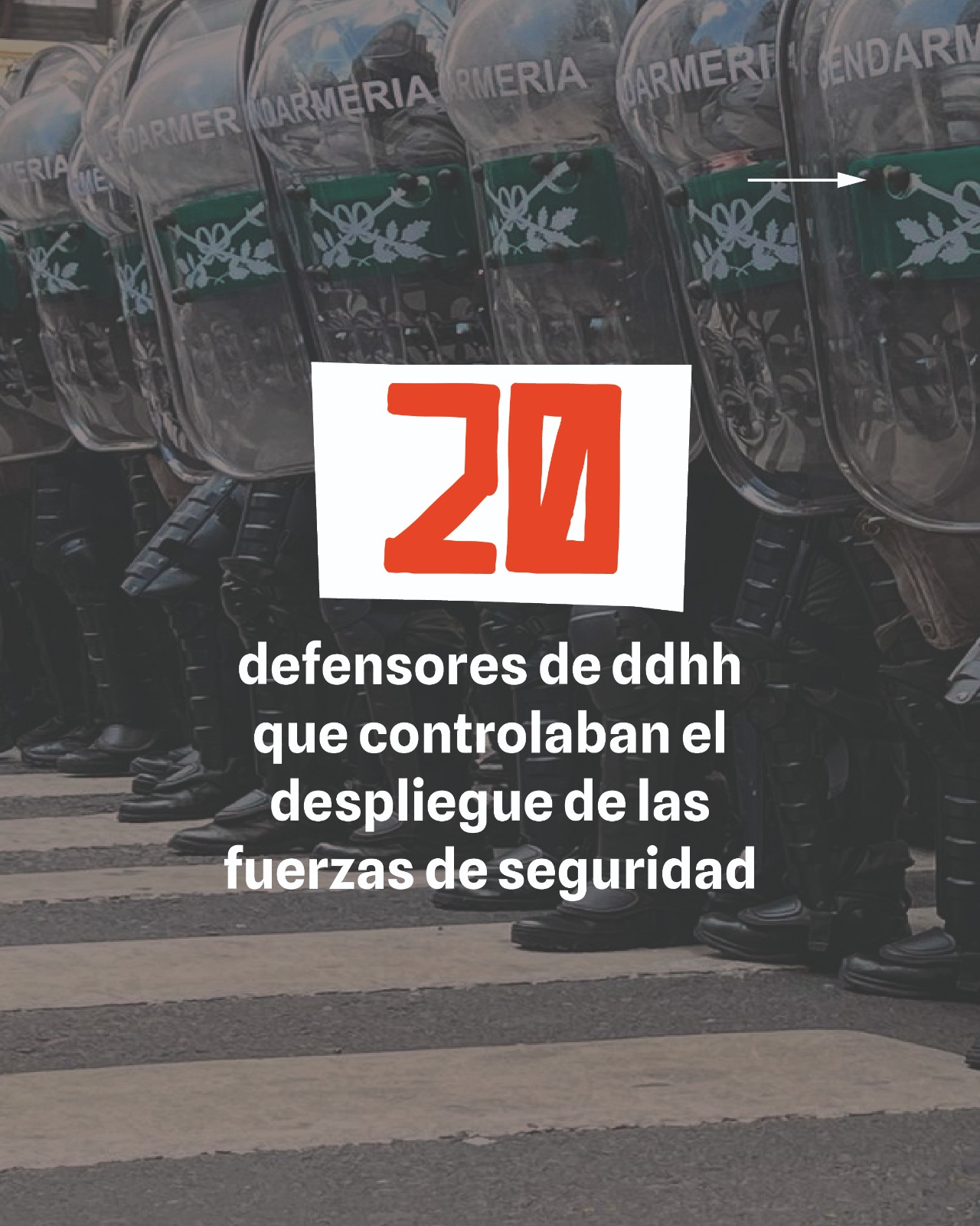 Las fuerzas federales –Policía Federal, Gendarmería Nacional, Prefectura y Policía de Seguridad Aeroportuaria– y la Policía de la Ciudad de Buenos Aires utilizaron contra las y los manifestantes armas menos letales de manera irracional y desproporcionada, sin respetar los protocolos de usos. Dispararon con postas de goma a corta distancia y contra zonas vitales, arrojaron gases químicos sobre los rostros, lanzaron agua a presión, y golpearon con tonfas y escudos.