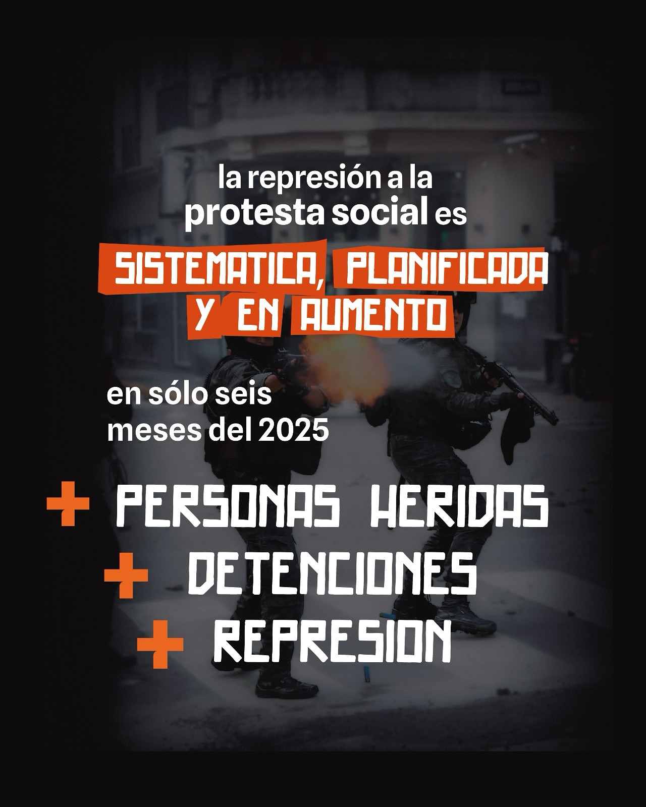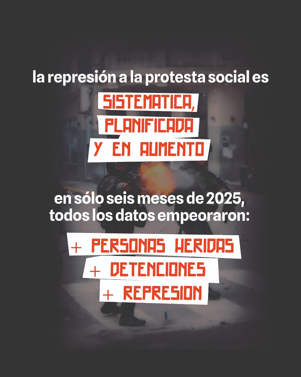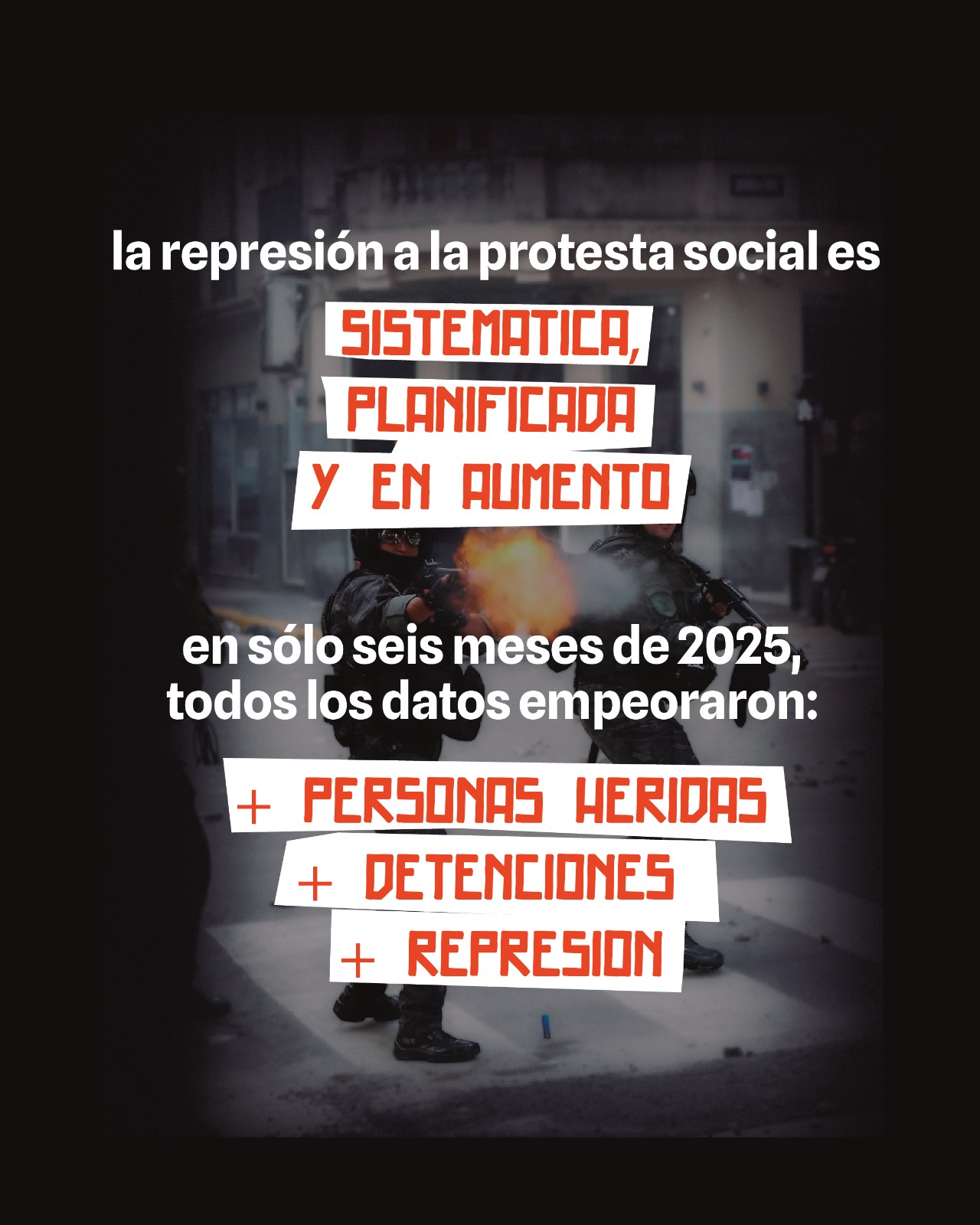 El monitoreo de estos primeros seis meses del año confirman el aumento exponencial de la represión a la protesta social: en sólo seis meses hubo más personas heridas y detenidas en la movilización que en todo el 2025.