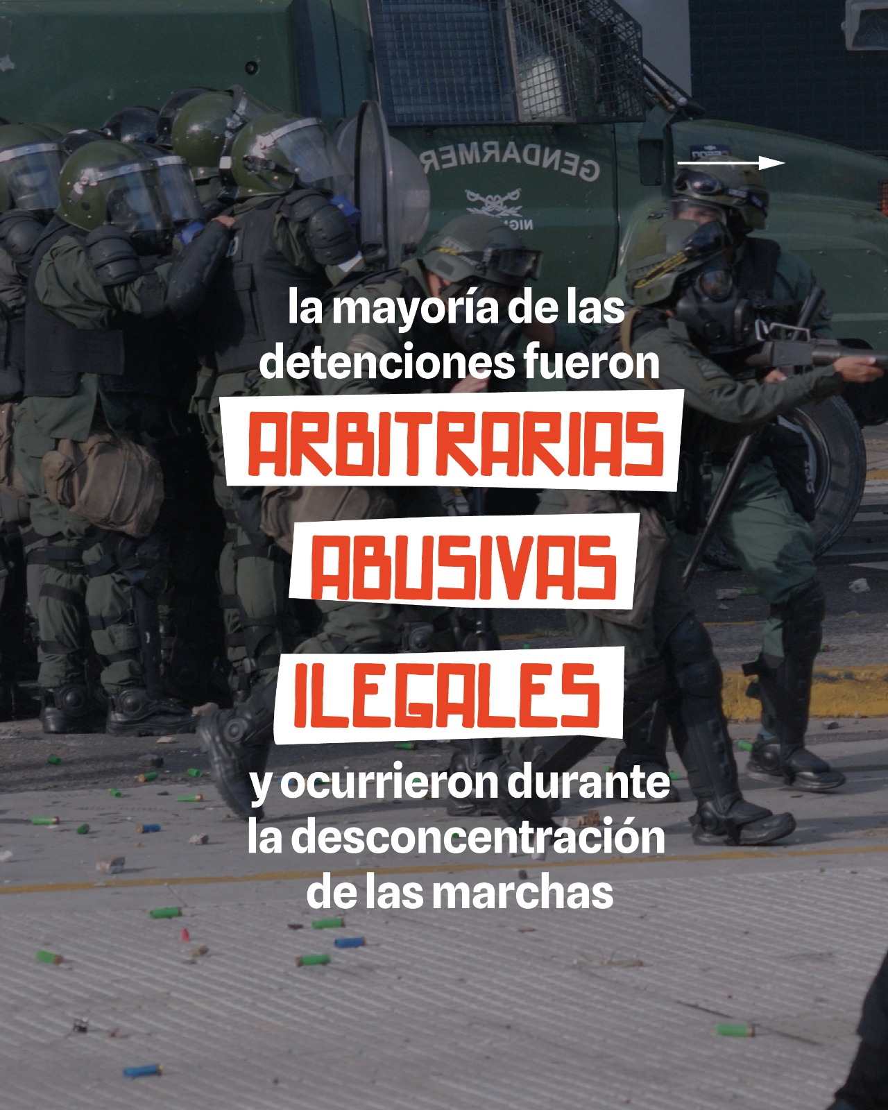 También hubo más detenciones en estos meses que en todo el año anterior: 130 contra 93. Como ocurrió en el primer año, se trató de detenciones arbitrarias, sin las mínimas garantías legales, en muchos casos sin informar los motivos ni los lugares de las detenciones. Entre las personas detenidas había periodistas, vendedores ambulantes, dos jóvenes, y transeúntes que pasaban por el lugar sin tener participación alguna con las manifestaciones.