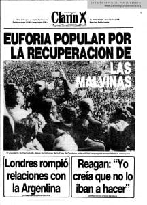 Nueva movilización en Plaza de Mayo en apoyo a las acciones de recuperación de las Islas. La prensa afirmó que concurrieron más de 100.000 personas. Adhirieron el partido Justicialista, la Unión Cívica Radical, Saúl Ubaldini, Jorge Triaca, Marco Denevi, Jorge Asís, Silvina Bullrich, entre otres.