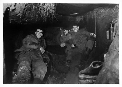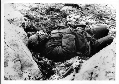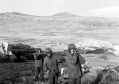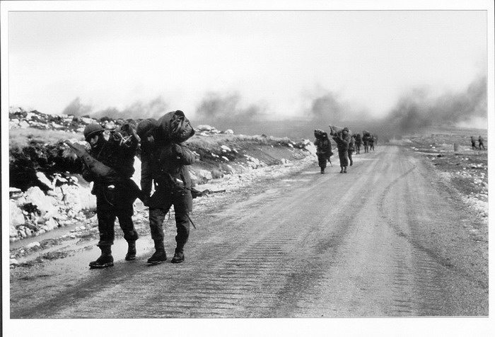“El 28 de mayo, después de tres días sin comer, con mucho hambre y con mucho frío, vivíamos completamente húmedos, todo el día mojados…Había (o veíamos) fusilamientos en Malvinas, decíamos: no, uds. están locos, no saben de lo que están hablando. Nosotros comprobamos a lo largo de los años que hubo fusilamientos en Malvinas. Incluso dicho por los ingleses. Estábamos muy afectados, teníamos mucho frío, mucho hambre, calcinados totalmente en lo que era el cuerpo en sí, habíamos sufrido mucho. Y estaba el otro sufrimiento mental que era ver a los compañeros heridos. Teníamos compañeros ahí heridos que, entre nosotros tratábamos de curarlos en ese momento.”