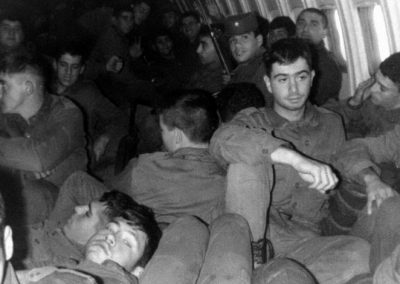 “A mi me trajeron los ingleses prisionero. Nos tuvieron en Campo de Mayo unos días y después nos llevaron al regimiento 7 (en La Plata) y hasta llegar ahí, nadie iba… Íbamos como cuarenta micros, era una fila muy larga de micros, con los vehículos del ejército y todo, ni pelota en Capital. Pero cuando empezamos a entrar en City Bell y todo, que ya sabían que éramos los excombatientes. Yo creo que la gente no sabía que eran excombatientes los que veían en Capital. A los dos costados de la ruta había cualquier cantidad de gente. Llegamos al regimiento a las 12 de la noche. No nos dejaban hablar con nadie. Yo alcancé a decir que era Marcelo Mengarelli de Saladillo y acá Eduardo Rivarola que era papá de un amigo mío escuchó en una radio por una radio que estaba escuchando y le avisó a mis padres, porque les habían dicho que nosotros por 10 días no íbamos a venir, o sea que mis viejos no estaban enterados que yo estaba o no estaba, así que se volvieron porque no le habían dicho donde estábamos. Después estaban medio mal anímicamente….”