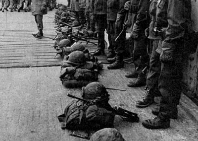 Pocos días antes del 2 de abril se producían las movilizaciones populares, recuerdo aquel 30 de Marzo de 1982, estaba junto a un grupo de soldados viejos en un campo de entrenamiento del Ejercito con la incorporada clase 63. Se nos ordena prepararnos en forma urgente para regresar al Regimiento, allí los oficiales nos informan que estaríamos acuartelados por que “existía la posibilidad de tener que reprimir”.