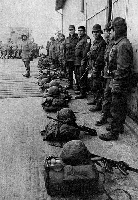 Militares argentinos desembarcan en las Islas Malvinas. La decisión había sido notificada al resto de los oficiales de la Junta y a funcionarios de la Cancillería, unos pocos días antes. Si bien este operativo no había tenido un gran apoyo, ni bien fue anunciado el ocupamiento de Puerto Stanley, la actitud fue de optimismo y júbilo. Esta situación, de alguna manera había sido prevista por Anaya y Galtieri, no así las reacciones de EEUU y Gran Bretaña. Se pensaba que EEUU iba a aceptar las circunstancias, una vez realizada la ocupación, y que los ingleses no estaban dispuestos al combate. Pero las previsiones no fueron acertadas.