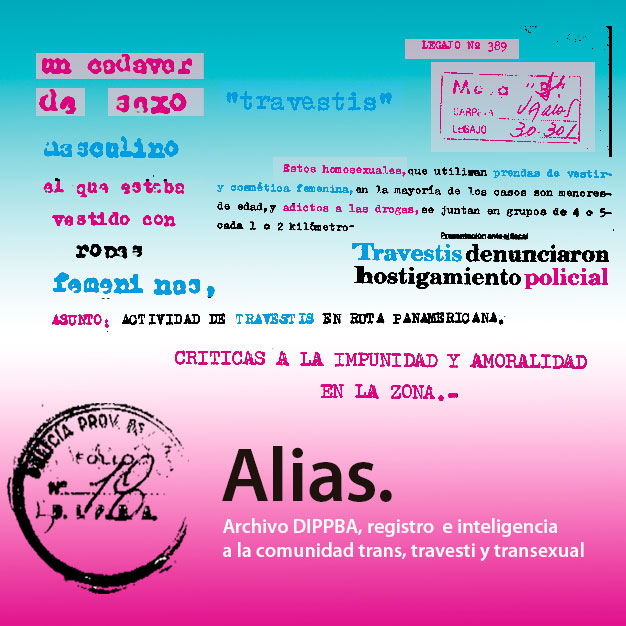 La Dirección de Inteligencia de la Policía de la Provincia de Buenos Aires (DIPPBA) espió a la comunidad trans y travesti, y persiguió sus acciones en pleno proceso de conformación de sus organizaciones durante los años ‘90. En esos informes se registraba el alias de la persona investigada, práctica que ya se había llevado a cabo durante la dictadura militar con quienes sufrieron persecución por razones políticas. Para la policía era el nombre de batalla de las personas trans; para ellas era su nombre propio.