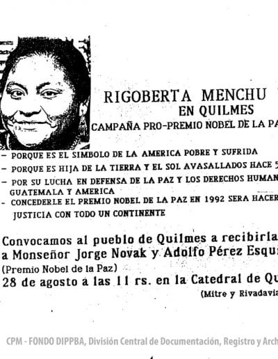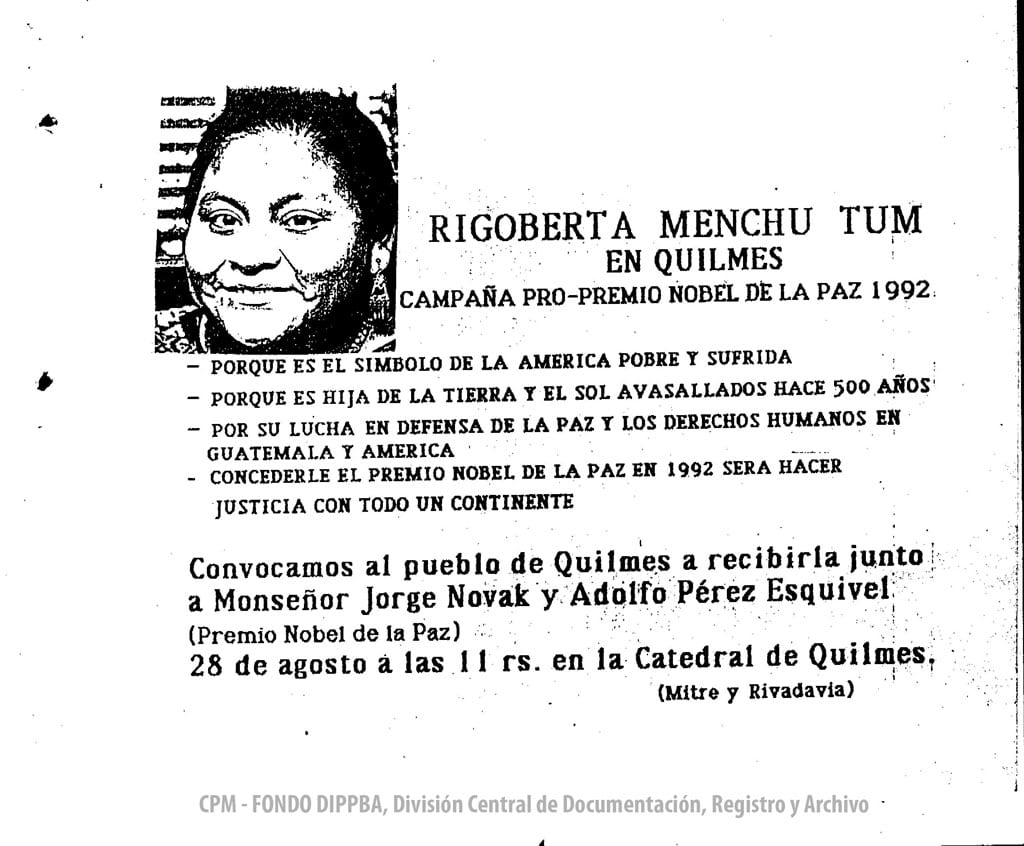 Más allá de las hipótesis conspirativas formuladas por la DIPPBA, el V Centenario fue una oportunidad para que comunidades indígenas de América visibilicen sus culturas, sus resistencias, su actualidad y sus reclamos históricos. En este marco, entre las acciones promovidas por estas comunidades, se realizó la campaña para que se le otorgue el Premio Nobel de la Paz a Rigoberta Menchu Tum como forma de reivindicar la resistencia y luchas de las comunidades que su figura representa.
