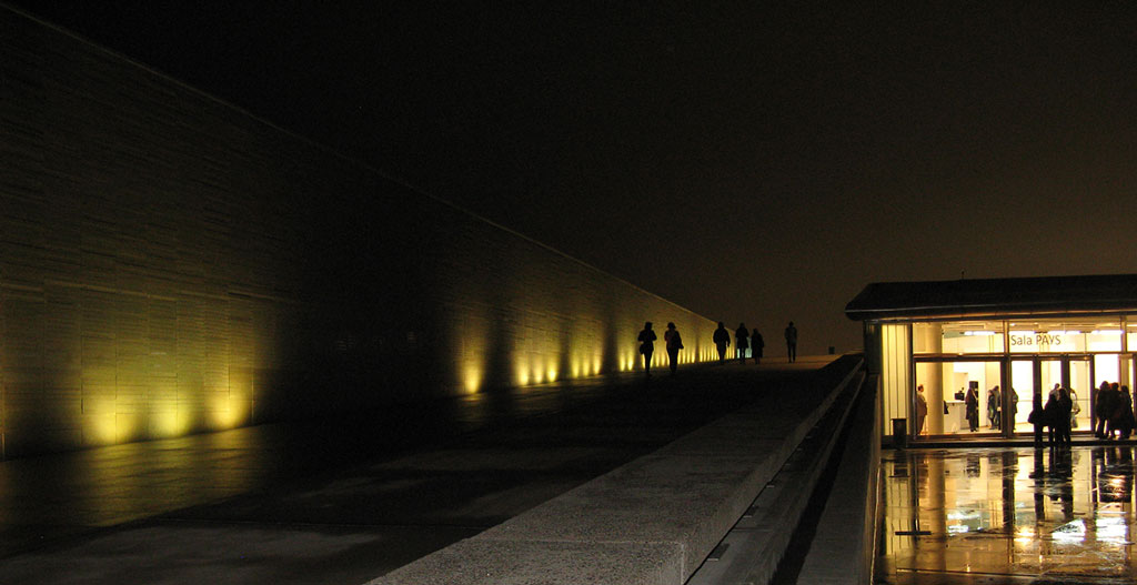 El diseño se presenta como un corte, una herida abierta en una colina de césped despojada de cualquier otro elemento. La intervención paisajística y el trazado recrean, por una parte, el esfuerzo necesario para la construcción de una sociedad más justa y, por otra, la herida causada por la violencia ejercida por el Estado. La elección del lugar para su instalación también guarda un profundo significado en consonancia con los hechos que se busca rememorar.