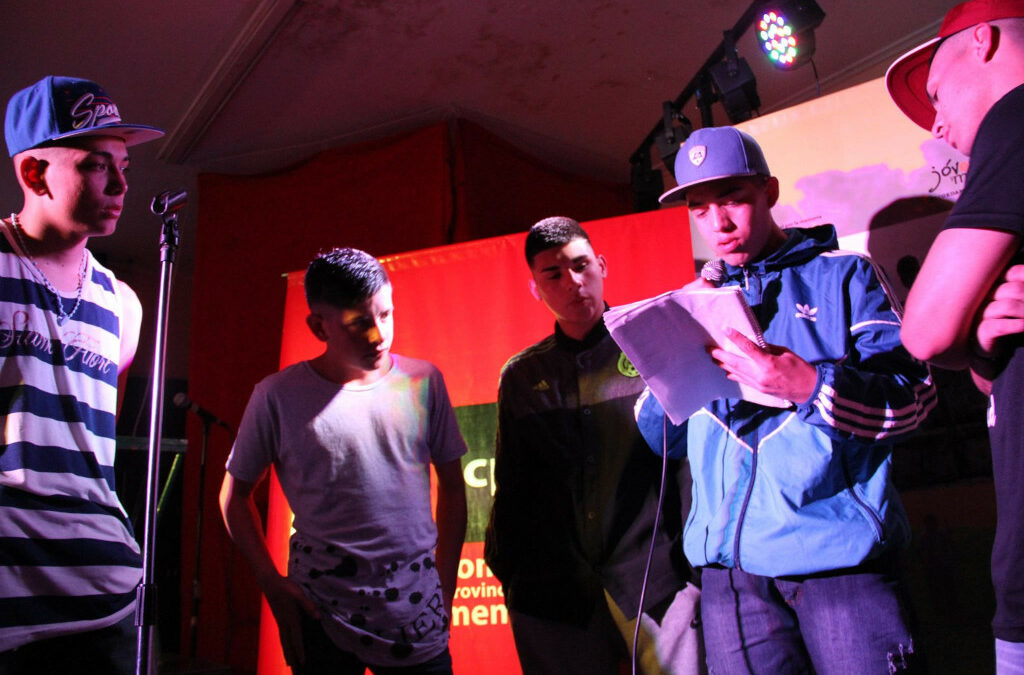 Franco, Wanda, Nazareno y Joaquín tienen 16 años y vinieron por primera vez al encuentro de cierre en Chapadmalal cuando tenían 11 ó 12. En el camino, trabajaron sobre los desaparecidos de González Catán, el femicidio de Carla Bufano, la recuperación de espacios verdes en el barrio. El encuentro les permitió conocer los problemas que tienen otres jóvenes y también comprender que hay violencias, estigmas, discriminaciones, a veces, naturalizadas.